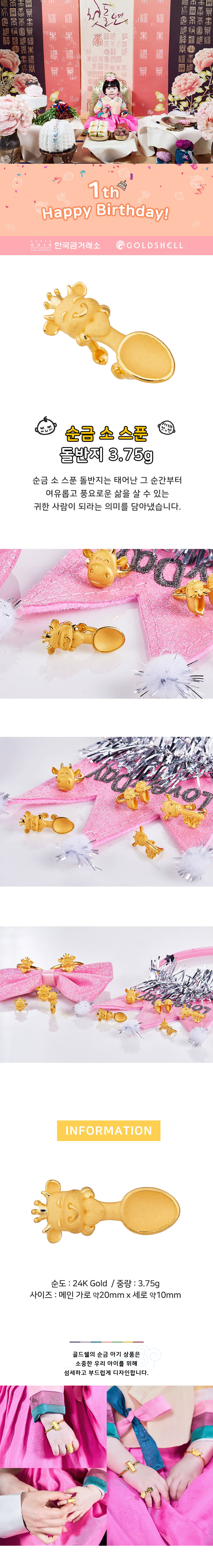 • 순금 소 스푼 돌반지 3.75g