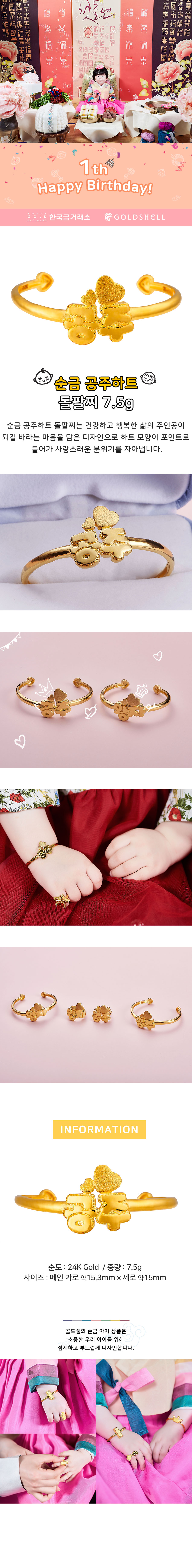 순금 공주하트 돌팔찌 7.5g